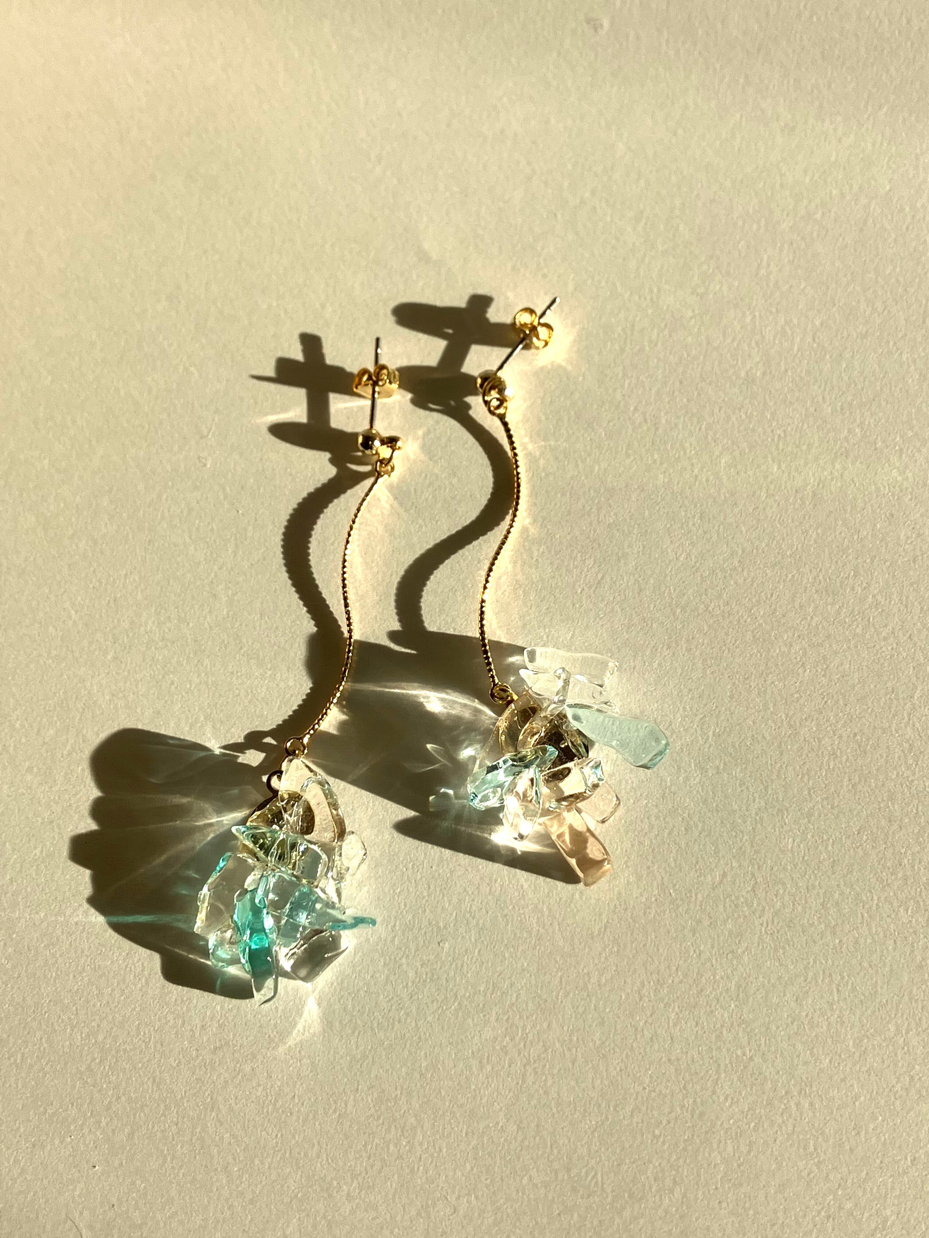ピンク、ブルーのガラスを使った華やかなデザイン。湾曲した金具が涼しげです。